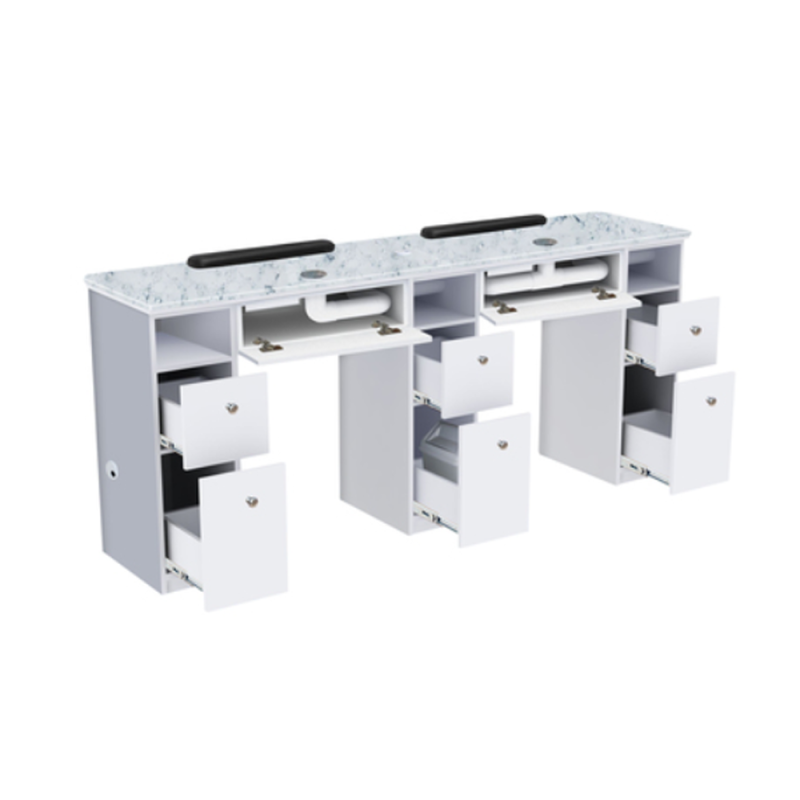 The Nova I Collection will create an upscale atmosphere with its sophistication and contemporary design. The grey and white hues have a timeless style that will keep your salon on trend through all four seasons. Each piece in this collection is crafted with real, high quality wood and lab marble that are acetone and scratch resistant. You don’t need to worry about spills damaging this collection’s furniture because it’s made of materials that are easy to clean and is unaffected by products or climates that cause cracking unlike the average, wooden nail salon furniture. When you buy the Nova I Collection, you’re investing in premium craftsmanship and a chic design