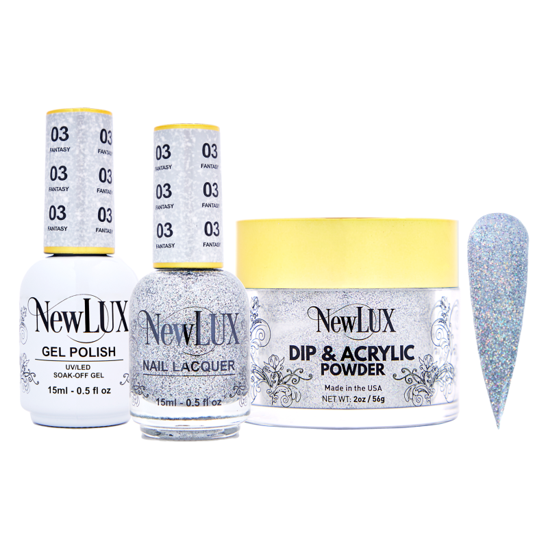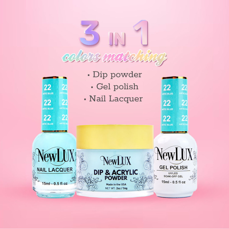 NewLUX 3in1 collection features multi-Functional powders that can be used as dip&acrylic , Ombre , 3D designs and much more!