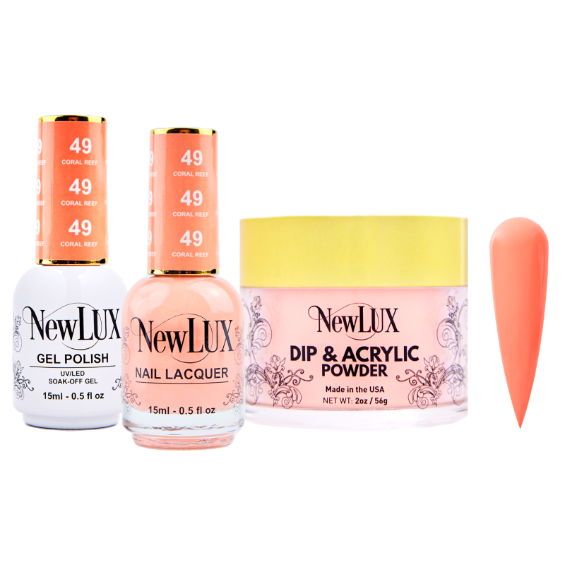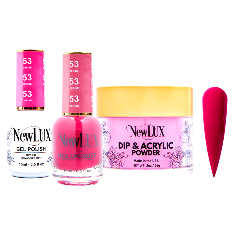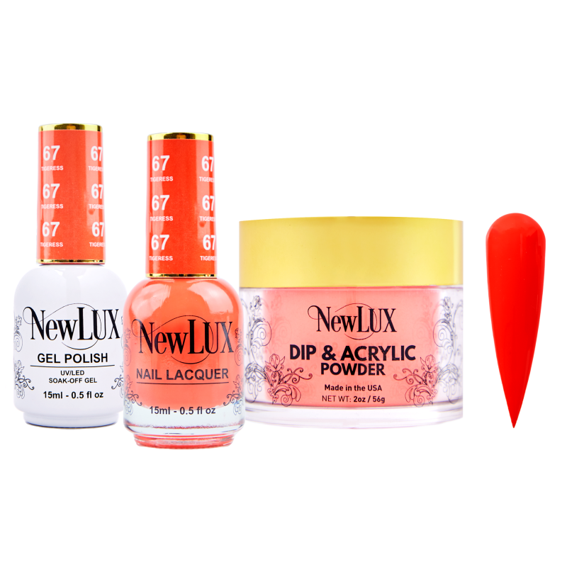 Both of our NewLUX gel DUO , Dip&Acrylic powder are Highly pipmented and smooth formula , provides a strong and long lasting.