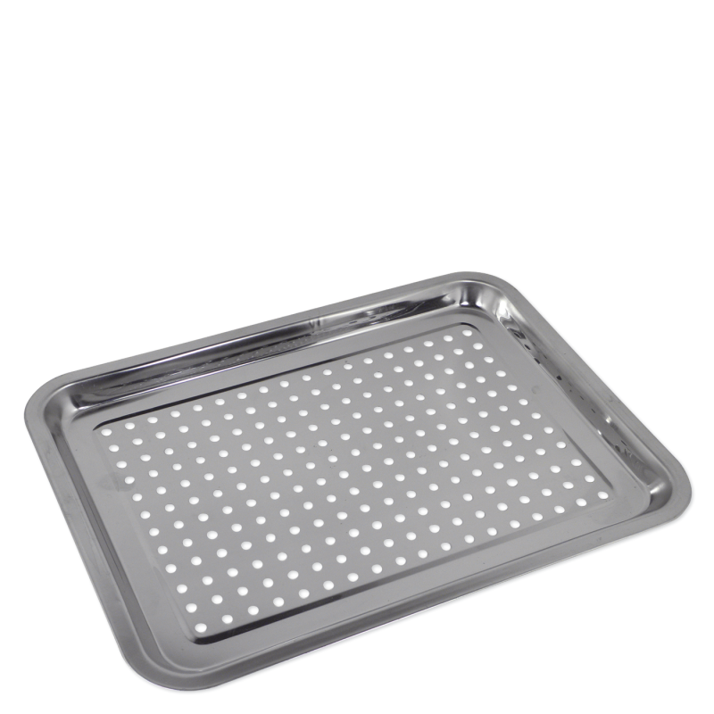 Stainless steel tray holds implements and can be used with a sterilizer box.